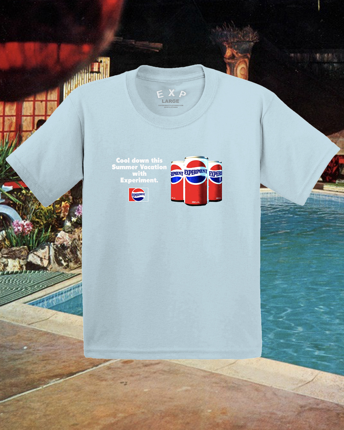 Can graphic printed on a comfortable baby blue tee shirt.
