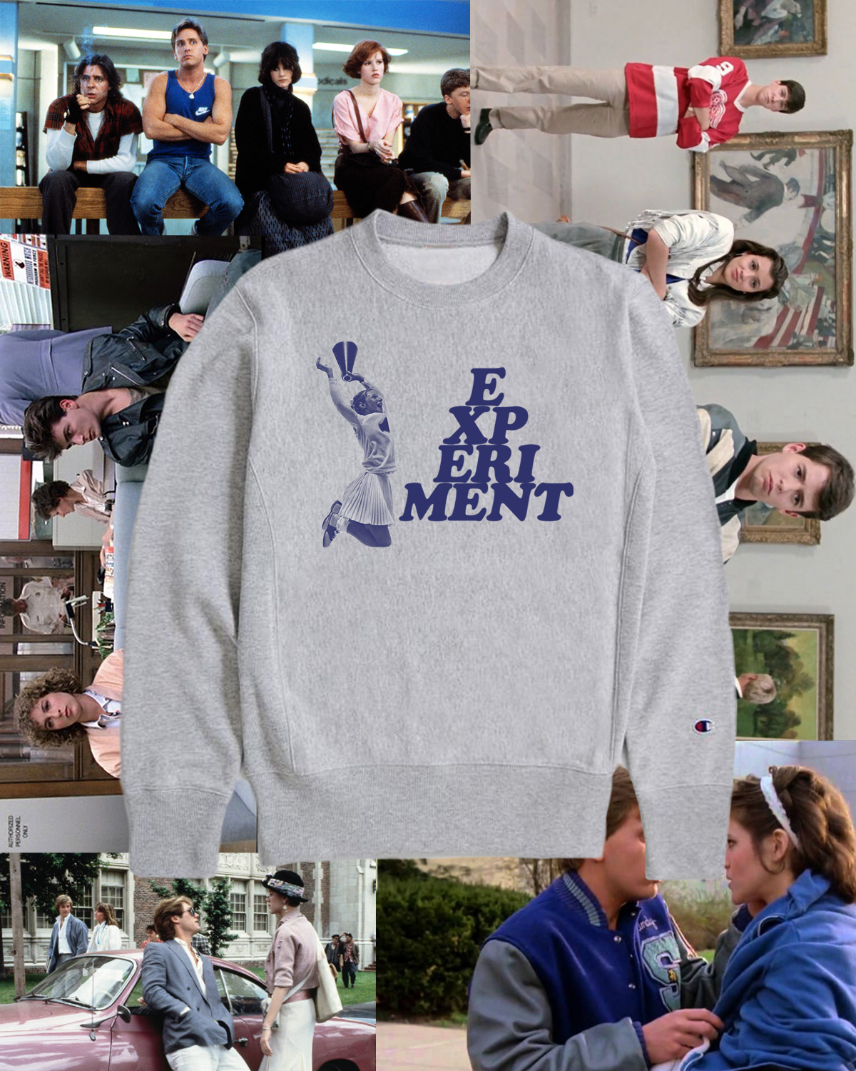 Cheerleader graphic screen printed on a Champion Reverse Weave crewneck sweater.