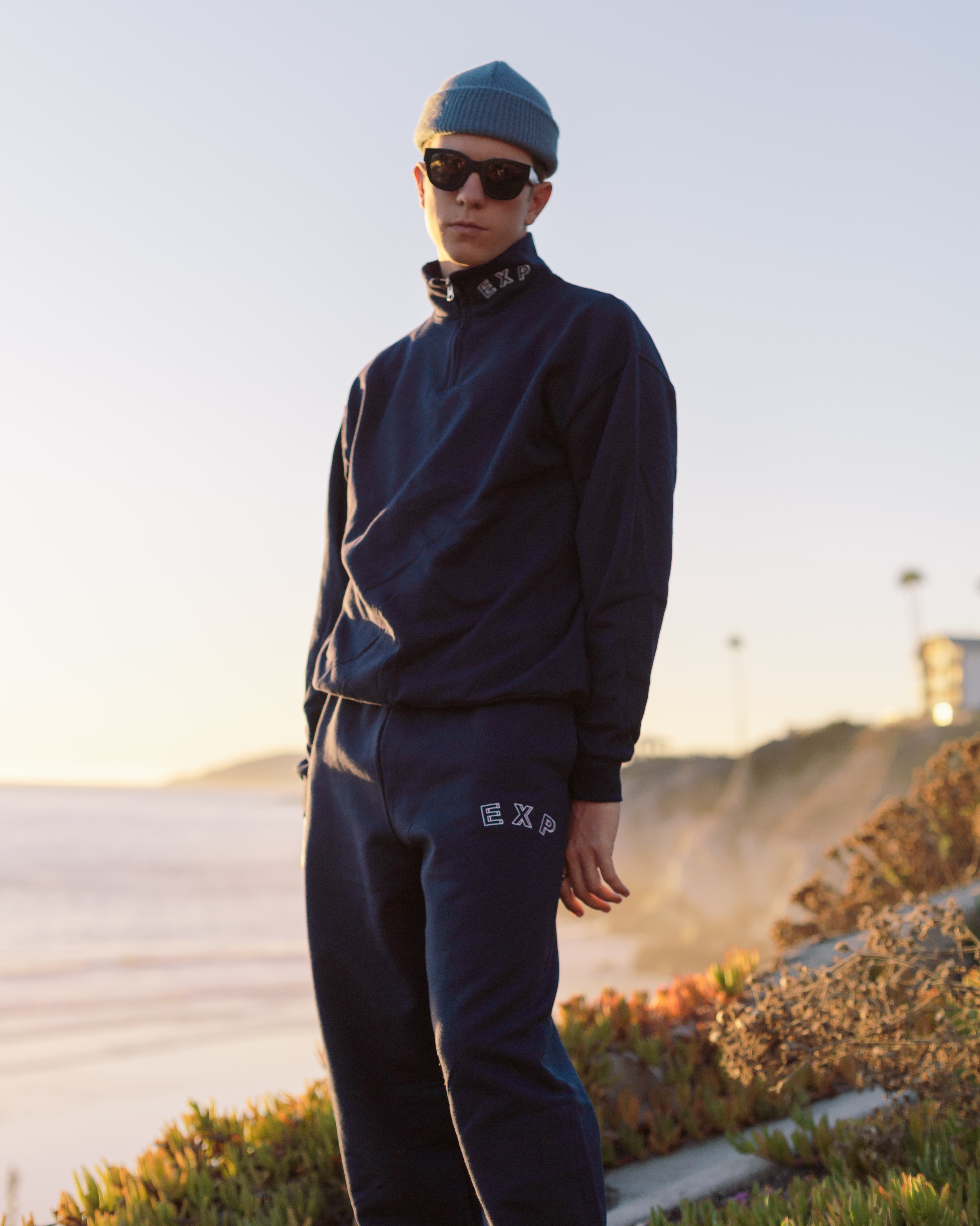 Experiment’s 3D logo embroidered on a Navy Blue Quarter Zip Sweatshirt.